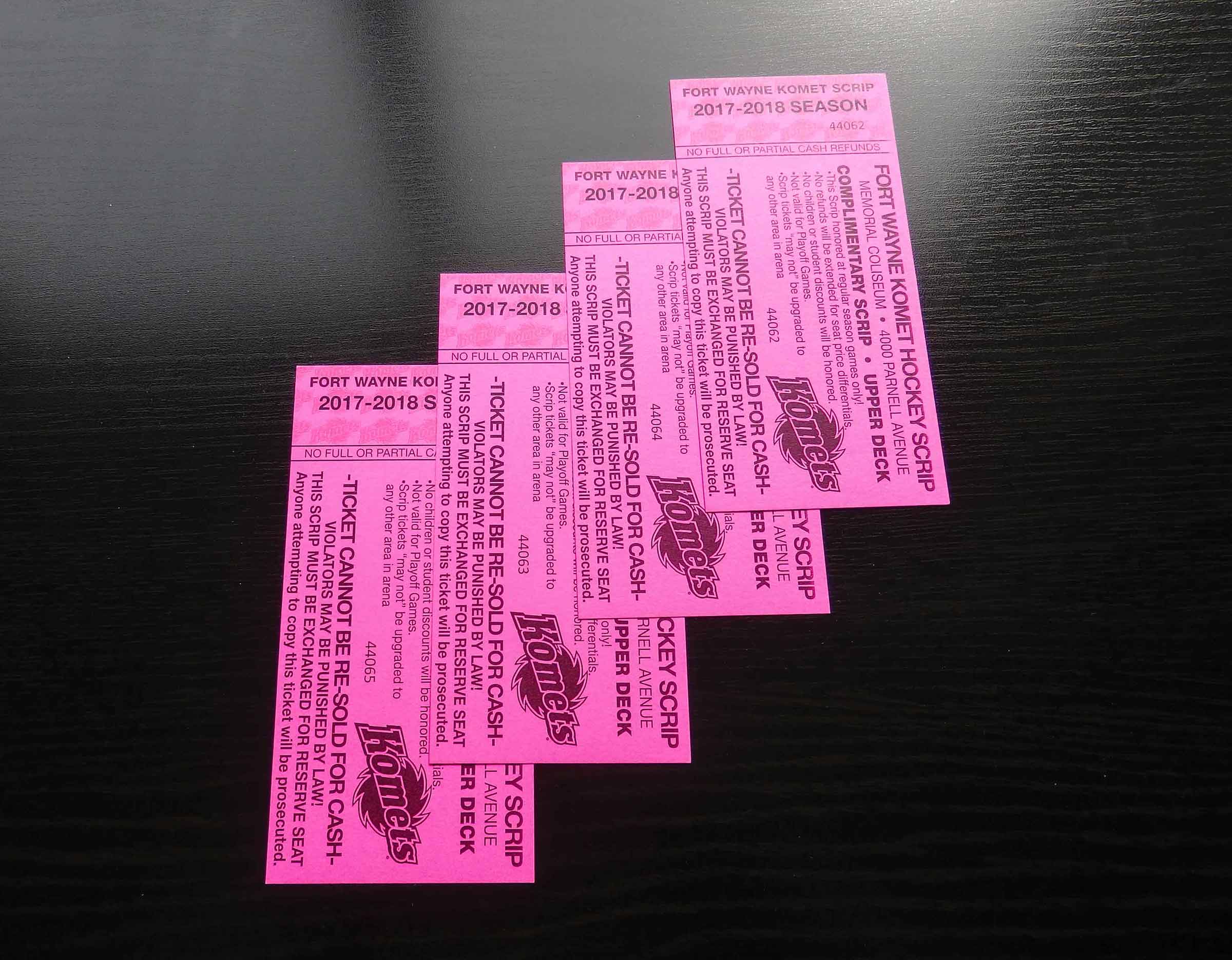 Four (4) Upper Deck Tickets for Fort Wayne Komets 2017-2018 Season